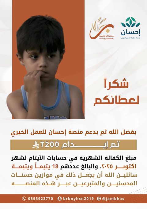 شكرا لعطائكم.. دعم الأيتام الشهري