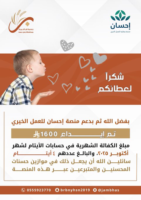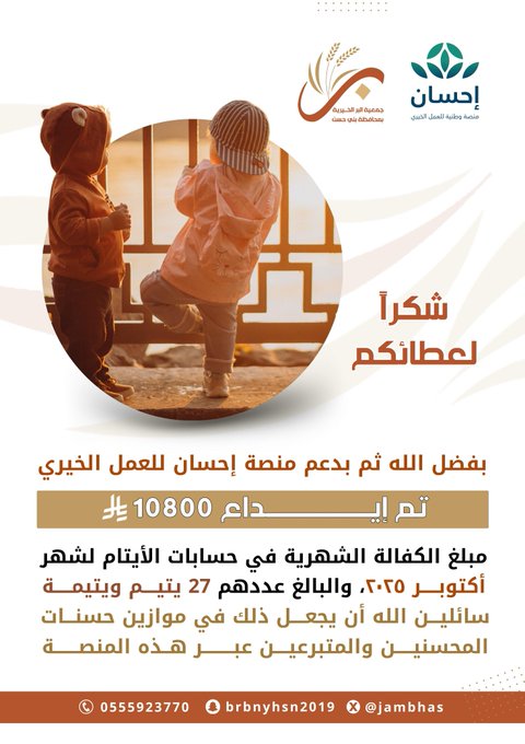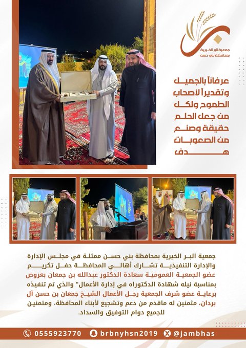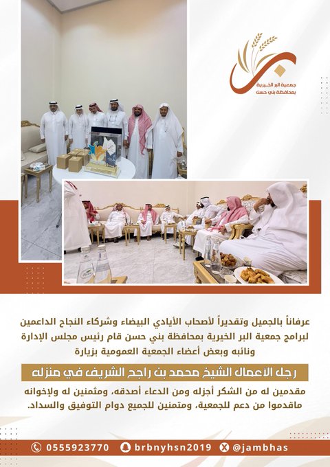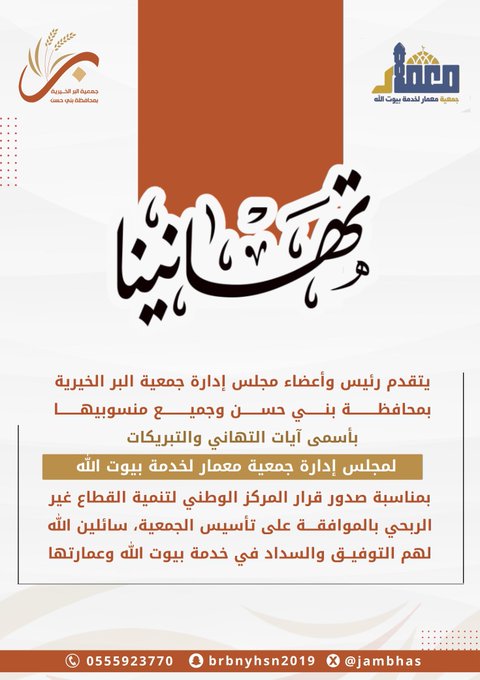تهنئ جمعية البر ببني حسن جمعية معمار بمناسبة تأسيسها