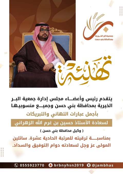 التهاني والتبريكات لسعادة الأستاذ حسين بن غرم الله الزهراني