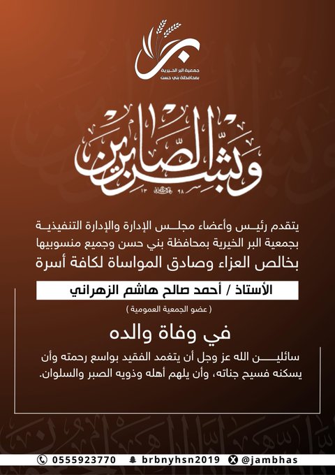 تعزية أسرة الأستاذ أحمد صالح هاشم