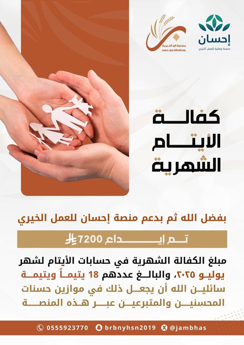 كفالة الأيتام الشهرية بدعم منصة إحسان